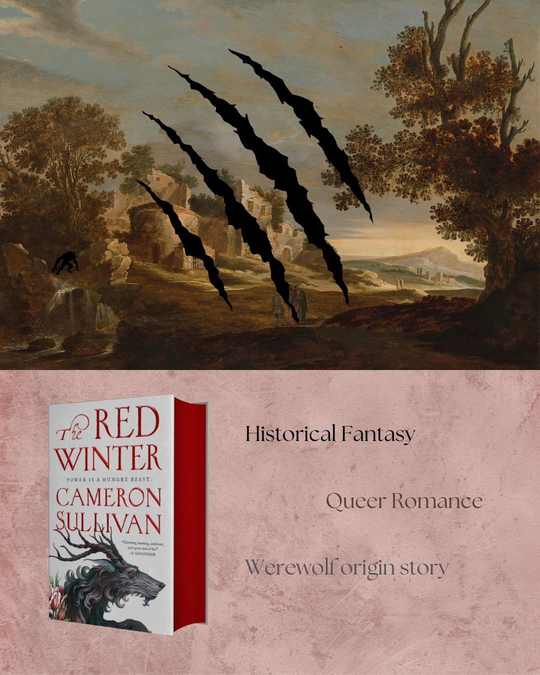 I loved a lot about this historical fantasy imagining of the real story behind the Beast of Gévaudan, the man-eating animal that terrorized a region of France over a period of years in the late eighteenth century (there are several other works of fiction based off of this part of history, and the one that comes to mind foremost for me is the movie Brotherhood of the Wolf). It’s dark and bloody, it’s got elements of mythology and the paranormal, and it features a doomed queer romance.